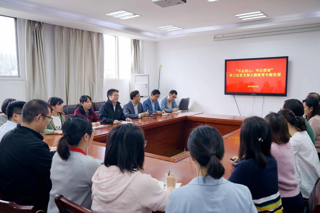 为扎实推进“不忘初心 牢记使命”主题教育活动,庆祝新中国成立70周年, 10月12日下午,学工处党支部书记刘亮以《辉煌七十载 点亮新中国》为主题为全体党员上了一堂精彩的党课。